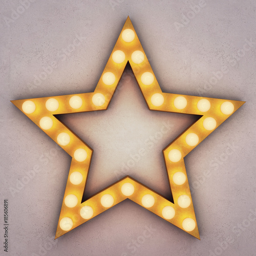 Canvas Prints golden retro star with glowing light bulbs on concrete background. 3d rendering