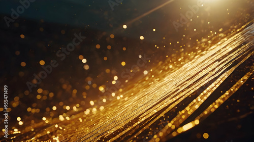 The watermark will not be included on Canvas Print.: Golden sparkle: a mesmerizing abstract backdrop of golden light streaks and shimmering particles evo