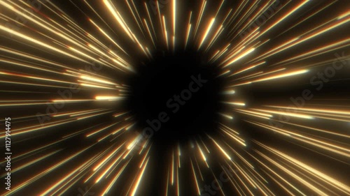 The watermark will not be included on Canvas Print.: Golden streams of light flow in mesmerizing motion, resembling electromagnetic waves or a journey th