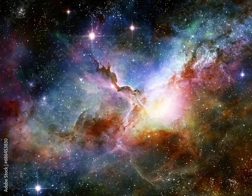 The watermark will not be included on Canvas Print.: Gorgeous space and twinkling stars background image with nebula gas cloud