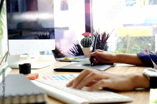 Canvas Prints graphic designer working with interactive pen display, young creative using digital drawing tablet a