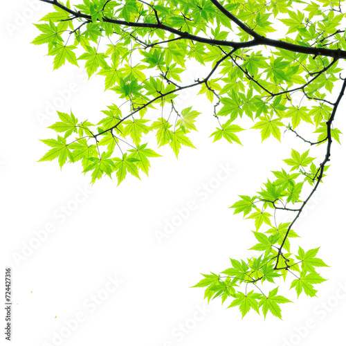Canvas Print : Green maple leaves branches of tree on corner of picture png transparent file