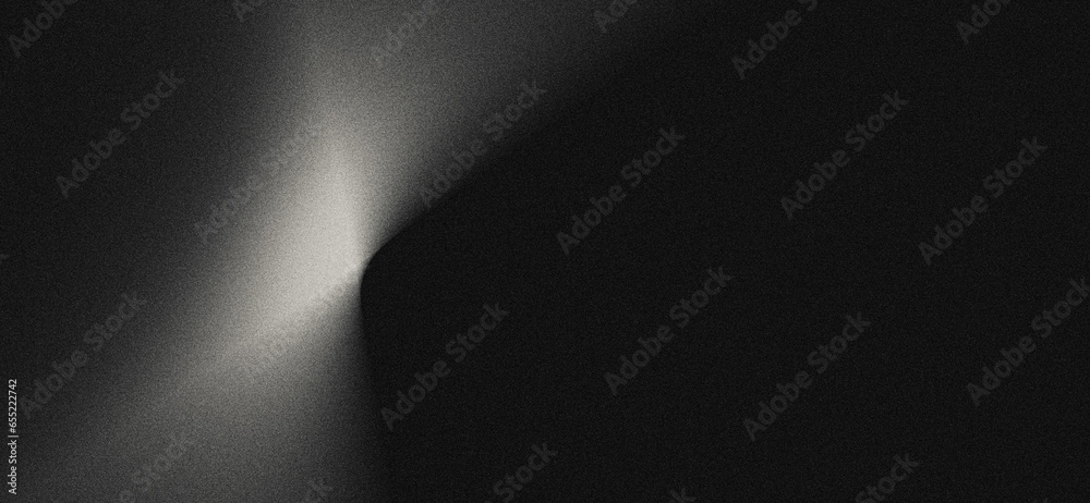 Canvas Print : Grey black white glowing abstract gradient shape on black grainy background minimal header cover pos