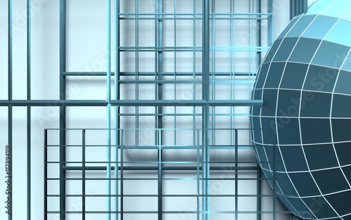 Canvas Prints gridded wireframe sphere on blue background. white lattice. 3d rendering.