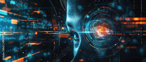 Canvas Prints hacker eyes on digital data background, banner with abstract network information. theme of ai, cyber