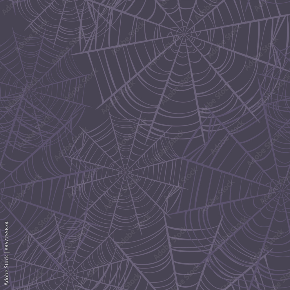 The watermark will not be included on Canvas Print.: Halloween background with spider web on dark - seamless pattern - vector cartoon flat illustration