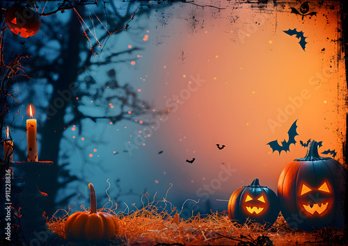 The watermark will not be included on Canvas Print.: Halloween element with border and background template