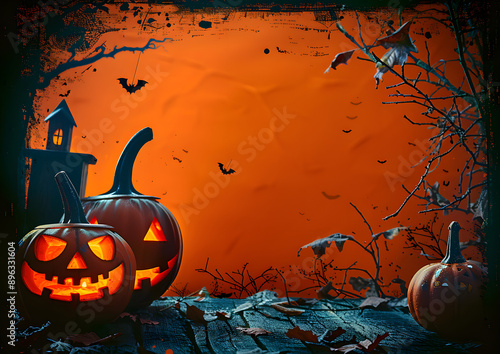 The watermark will not be included on Canvas Print.: Halloween element with border and background template