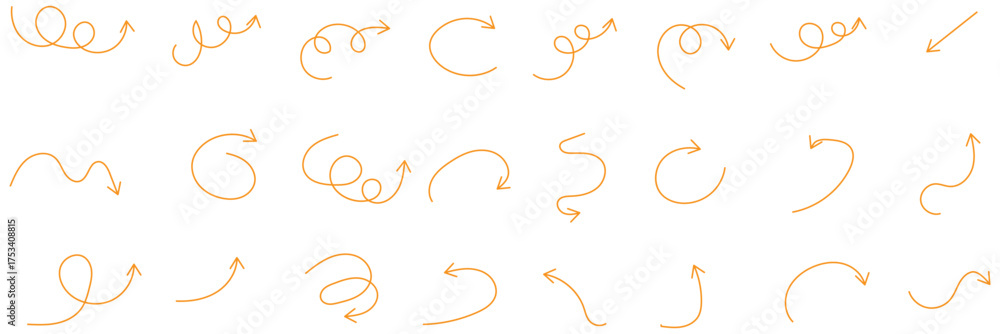 The watermark will not be included on Canvas Print.: Hand drawn arrow set with crayon texture - curved and straight, spiral and wavy directional pointers