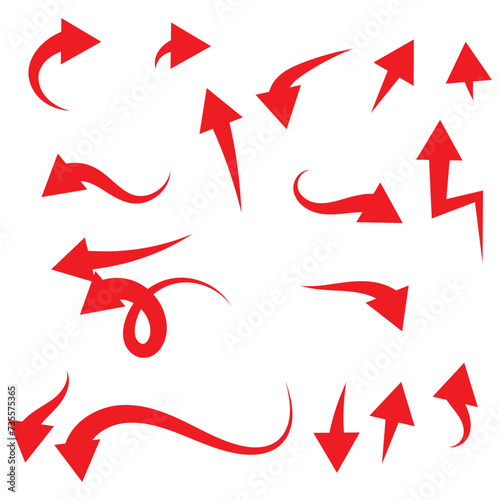 The watermark will not be included on Canvas Print.: Hand drawn arrows collection set simple flat arrows isolated on white background - arrow mark icons a