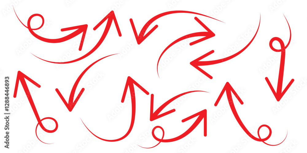 The watermark will not be included on Canvas Print.: Hand drawn arrows collection set simple flat arrows isolated on white background - arrow mark icons a