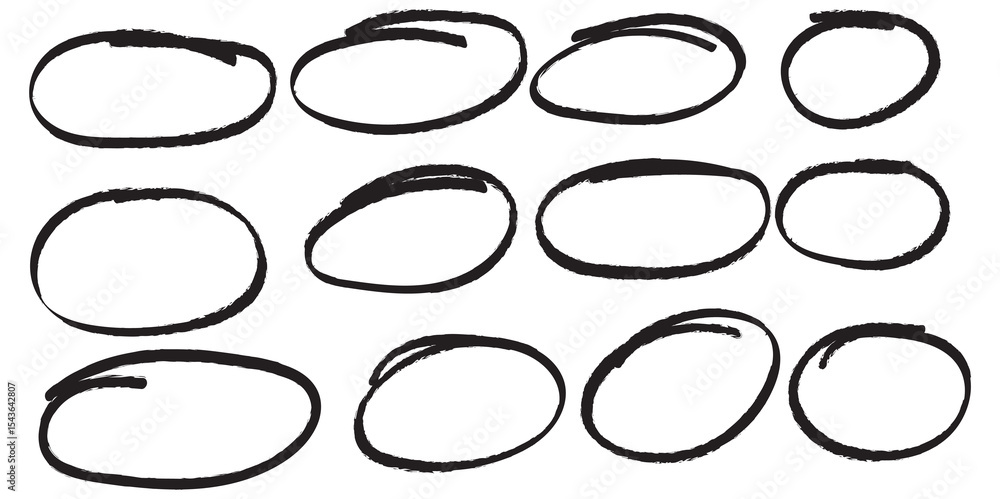 The watermark will not be included on Canvas Print.: Hand drawn circle highlighter line sketch set - vector marker circular lines, doodle round circles fo