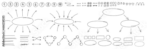 The watermark will not be included on Canvas Print.: Hand drawn diagrams, arrows and design elements set - vector black thin line drawing isolated on whit