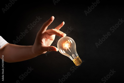 Canvas Prints hand pointing light bulb . mixed media