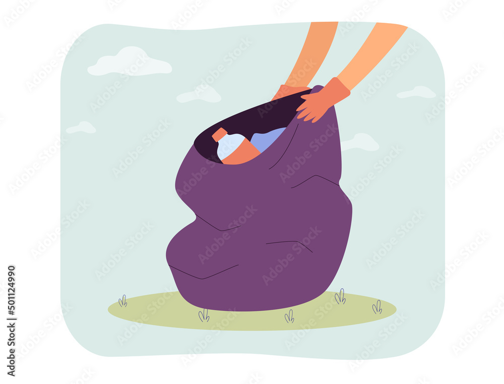 Canvas Prints hands of volunteer in gloves holding open bag with garbage. person collecting plastic bottles flat v - Canvas Prints Canvas Prints hands of volunteer in gloves holding open bag with garbage. person collecting plastic bottles flat v - Canvas Prints