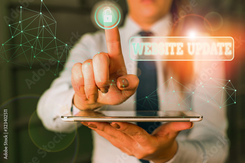 The watermark will not be included on Canvas Print.: Handwriting text website update - conceptual photo keeping the webpage and content up to date and tre