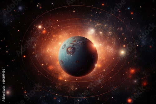Canvas Print : Heart, surrounded by stars and planets of the distant galaxy, created with generative ai