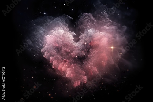 The watermark will not be included on Canvas Print.: Heart-shaped nebula with shooting stars and twinkling stars, created with generative ai