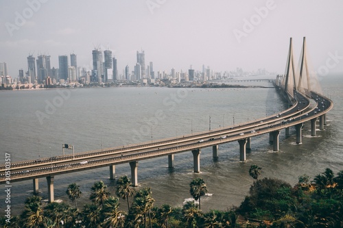 Canvas Prints high angle shot of bandra worli sealink in mumbai enveloped with fog - Canvas Prints Canvas Prints high angle shot of bandra worli sealink in mumbai enveloped with fog - Canvas Prints