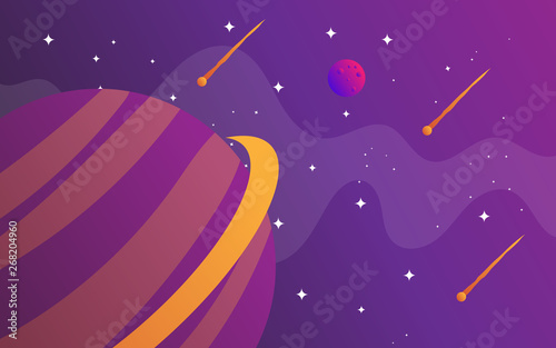 The watermark will not be included on Canvas Print.: Horizontal space background with abstract shape and planets - web design - space exploring - vector ill