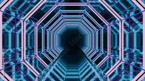 Canvas Prints ice color background with flying inside neon blue tunnel. design. corridor of hexagon silhouettes.