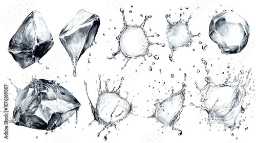The watermark will not be included on Canvas Print.: Ice cubes splashing refreshingly in crystal clear water, cool and invigorating summer drink