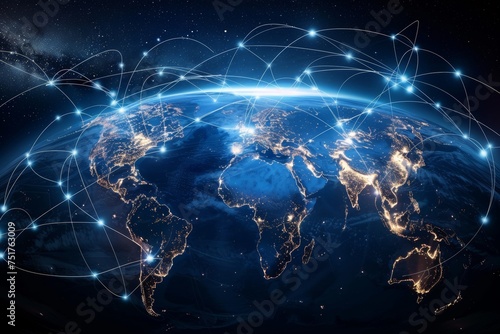 Canvas Prints illuminated earth with network arcs, showcasing global connectivity at night.