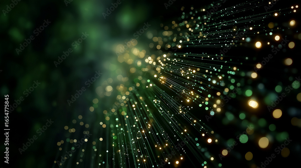 The watermark will not be included on Canvas Print.: Illuminated green abstract: captivating abstract design of luminous green dots and lines, radiating