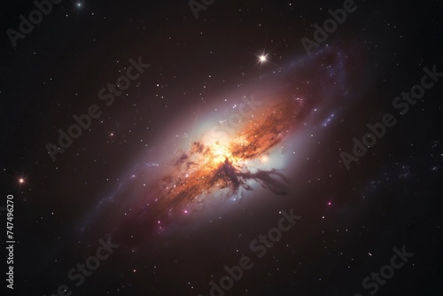The watermark will not be included on Canvas Print.: Illustration of a galaxy with vibrant cosmic clouds twinkling stars and a colorful nebula in a deep