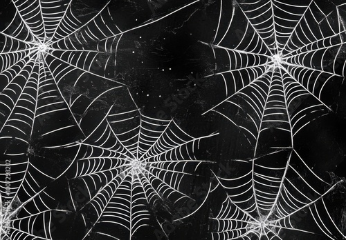 The watermark will not be included on Canvas Print.: Illustration of spider webs on a black background generative ai