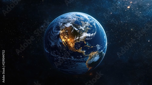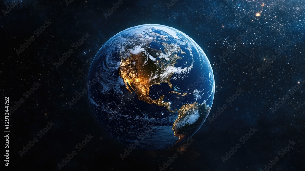 The watermark will not be included on Canvas Print.: Image of earth from space with stars shining bright in the background