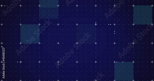 Canvas Print : Image of white markers and blue flickering squares on grid background
