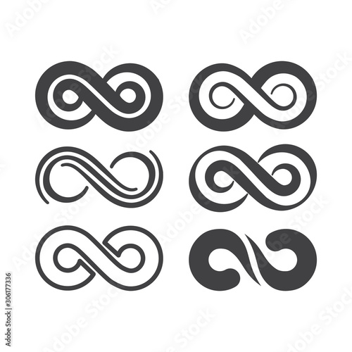 Canvas Print : Infinity symbol - vector logos set - black contours of different shapes, thickness and style isolated