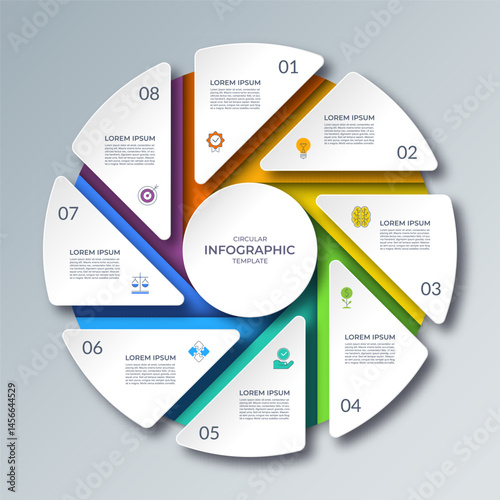 The watermark will not be included on Canvas Print.: Infographic cycle diagram with 8 steps - vector circular template that can be used for reports, busin