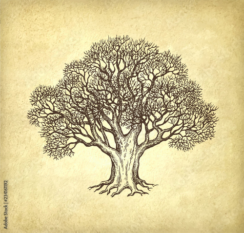Canvas Print : Ink sketch of oak without leaves -
