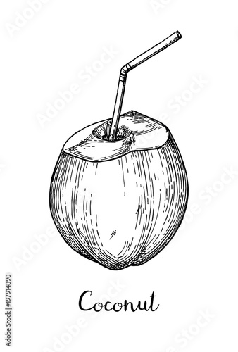 Canvas Prints ink sketch of young green coconuts. - Canvas Prints Canvas Prints ink sketch of young green coconuts. - Canvas Prints
