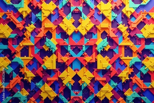 The watermark will not be included on Canvas Print.: Interlocking geometric shapes forming a continuous pattern, motif, backdrop