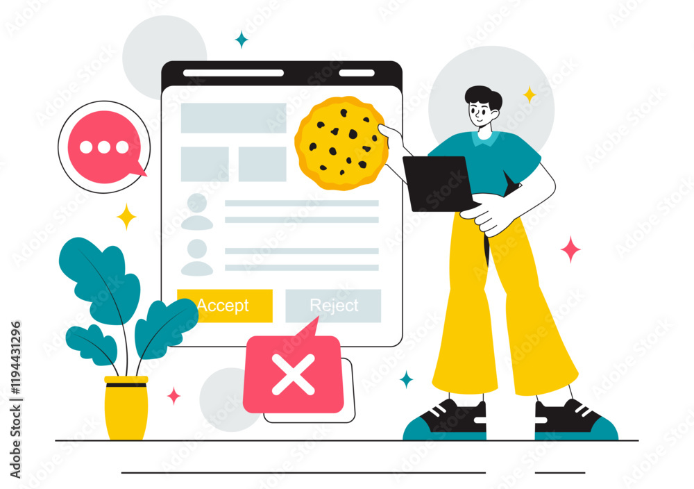 The watermark will not be included on Canvas Print.: Internet cookies technology vector illustration featuring tracking cookie records of user browsing a