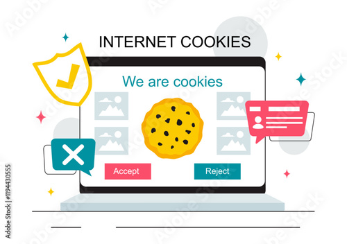 The watermark will not be included on Canvas Print.: Internet cookies technology vector illustration featuring tracking cookie records of user browsing a