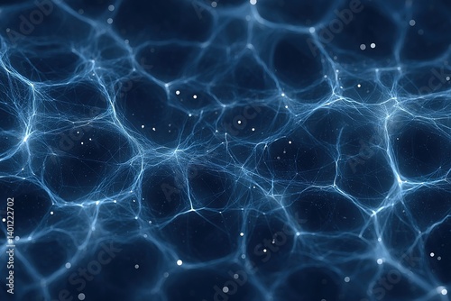 The watermark will not be included on Canvas Print.: Intricate blue patterns resembling a network of connections, illuminated against a dark backdrop