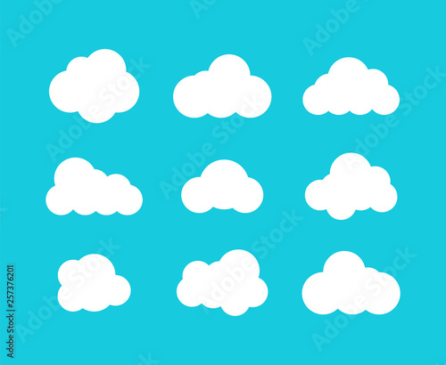 The watermark will not be included on Canvas Print.: Isolated clouds icons - cloud icons in trendy flat design on blue background