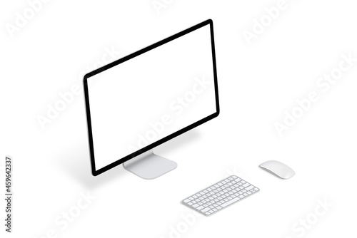 Canvas Prints isolated computer display, keyboard and mouse in isometric position. blank screen for mockup, app or