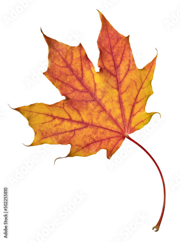 The watermark will not be included on Canvas Print.: Isolated red and orange leaf of maple tree