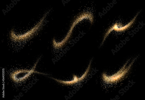 The watermark will not be included on Canvas Print.: Isolated set of design elements, abstract swirls in gold color