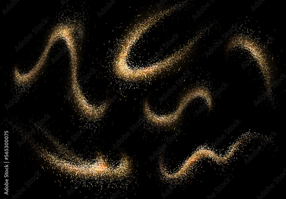The watermark will not be included on Canvas Print.: Isolated set of design elements, abstract swirls in golden hue