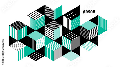 The watermark will not be included on Canvas Print.: Isometric 3d cubes vector abstract geometric background, abstraction art polygonal graphic design wa