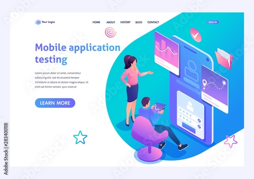 Canvas Prints isometric concept young people are engaged in testing the mobile application, the work of the progra