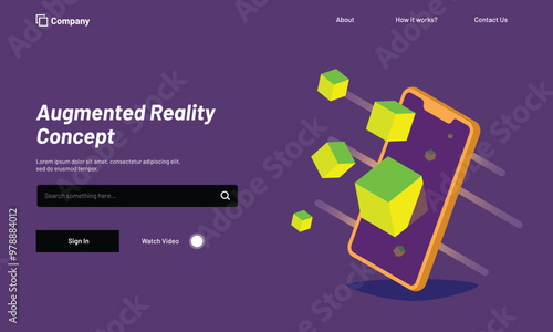 The watermark will not be included on Canvas Print.: Isometric smartphone with blocks, responsive landing page for augmented reality (ar) concept -