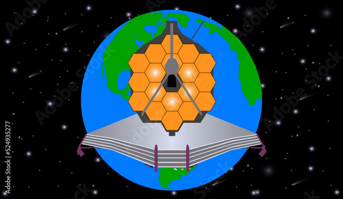Canvas Prints james webb telescope in a front of blue planet earth in outer space. vector illustration. elements o - Canvas Prints Canvas Prints james webb telescope in a front of blue planet earth in outer space. vector illustration. elements o - Canvas Prints