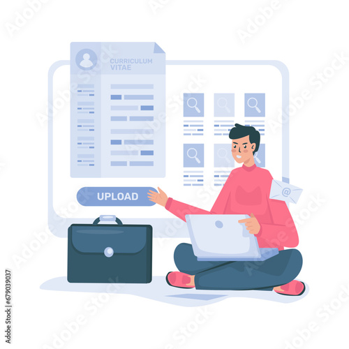 The watermark will not be included on Canvas Print.: Job seekers upload document cv vector illustration